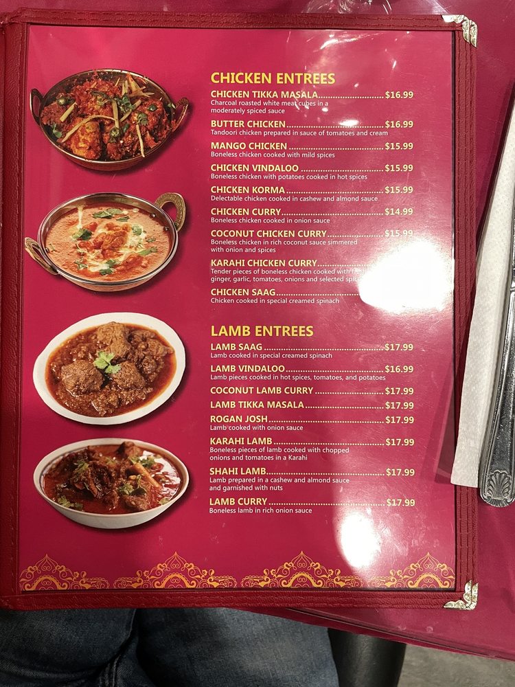 “ Solid spot for Indian food. We ordered takeout so can't speak to the dine-in experience but every time we order, it satisfies our Indian food craving. We order the usual, Butter Chicken, Chicken Tikka Masala and Lamb Curry and they're all super flavorful and delicious. My only knock is that it's a bit on the pricier side given the smaller the portion size. ”