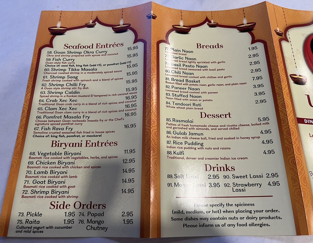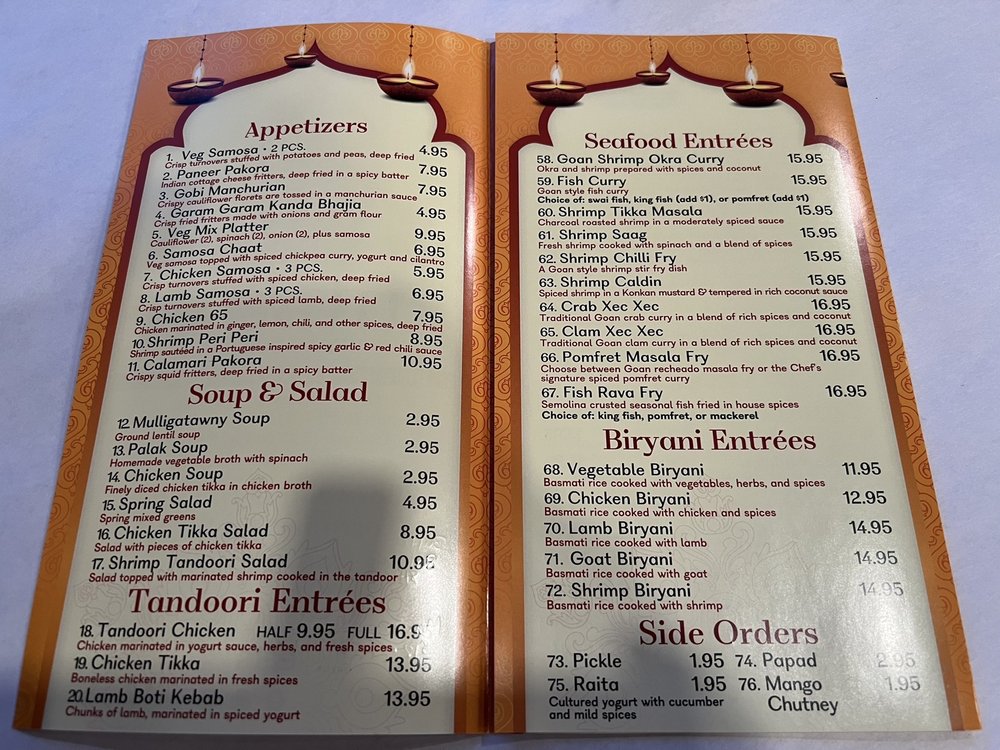“ Very good Indian food. Favorite menu items: Mixed Tandoori grill (with chicken, lamb, and shrimp), butter chicken, vegetable samosas, and naan bread (we got both the plain and cheese versions, both were delicious but the cheese naan was the best). Most of their business is either takeout or the lunch buffet. We didn't see many people come to dine-in for dinner but the service was friendly in this small restaurant. ”